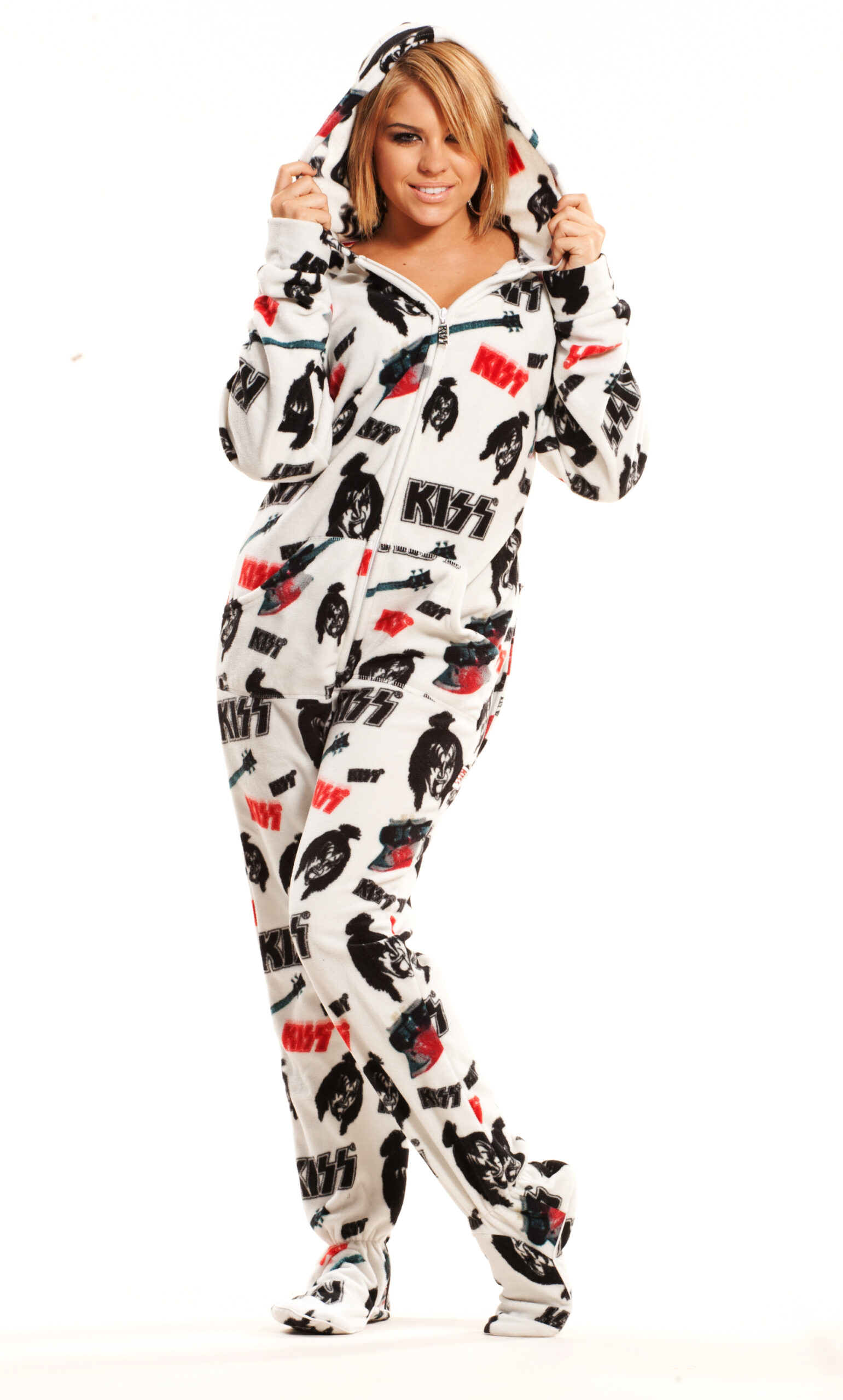 KISS Lick It Up onesie, hooded rock band pajamas, music-themed pajamas, KISS loungewear, footed onesie pajamas, cozy KISS pajamas