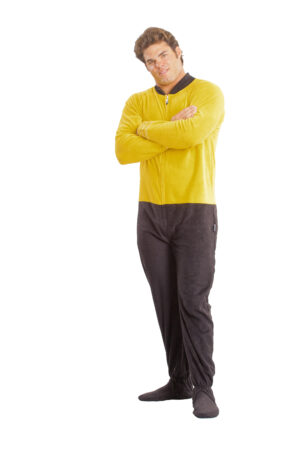 “Lead your crew in comfort with the Star Trek Command Gold Footed Onesie Adult Pajamas! Inspired by the iconic command division uniform, this golden onesie is perfect for Star Trek fans looking to show off their leadership style while staying cozy. Made from premium, soft material, this onesie features the recognizable Starfleet insignia and full foot coverage to keep you warm during your downtime. Whether lounging at home or attending a sci-fi event, this onesie is a must-have for Trekkies. Available in various sizes to fit all Starfleet commanders!”